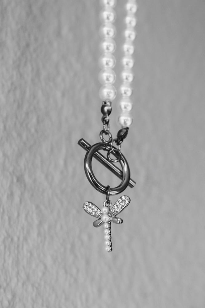 Colar com pérolas e o pendente em aço inoxidável ✨