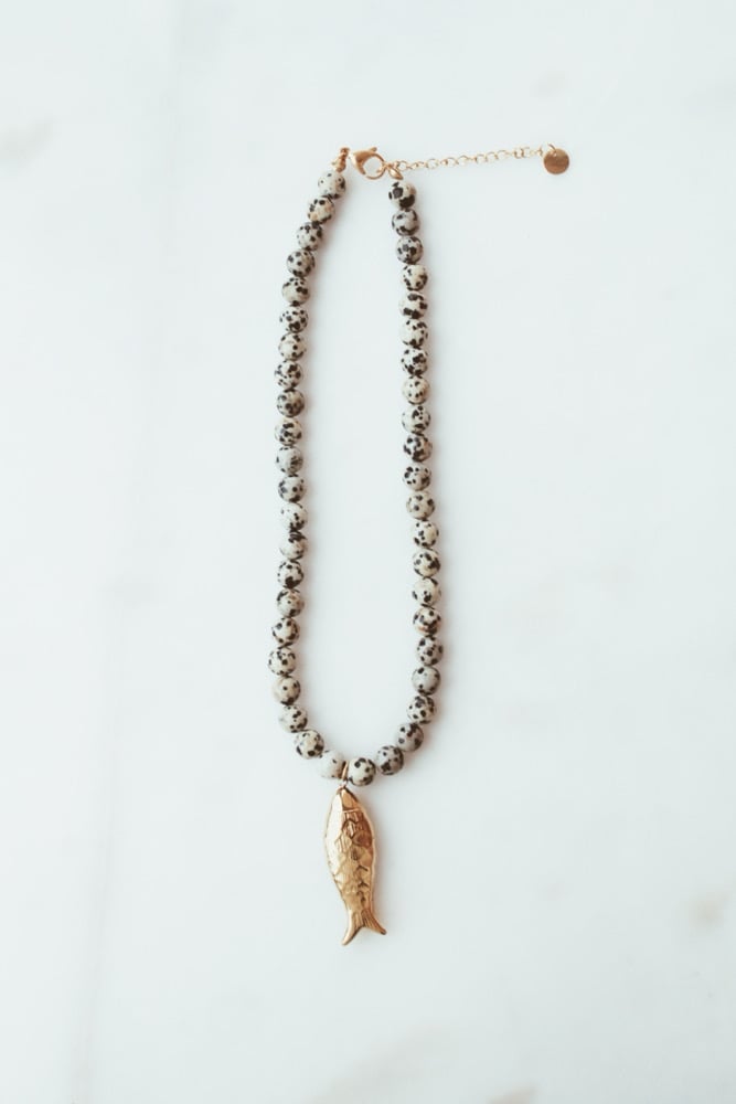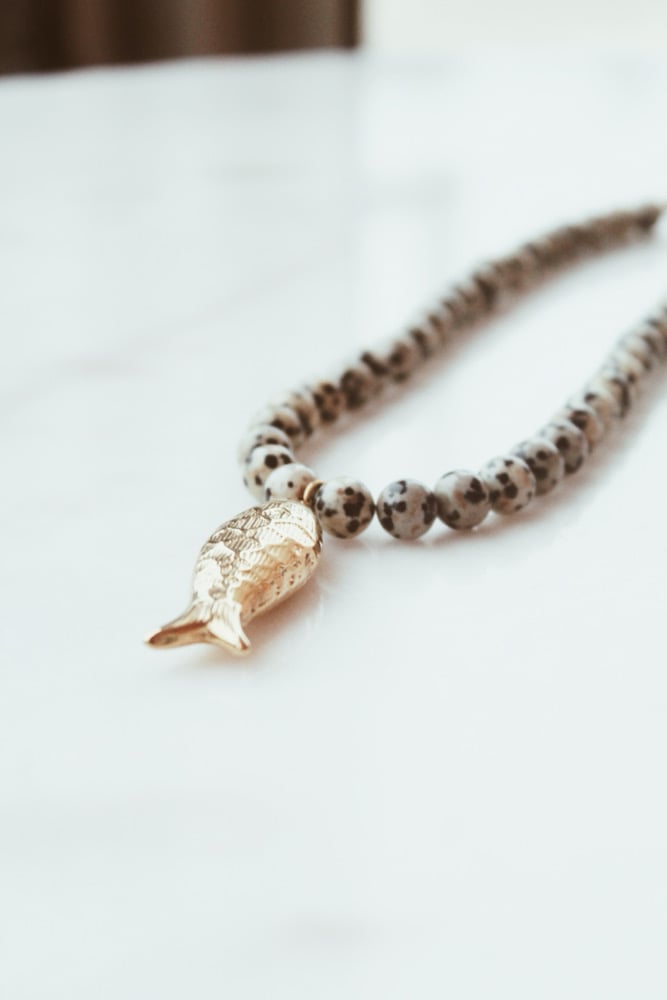 Colar com pedras naturais (jaspe leopardo) com pendente em aço inoxidável 💘