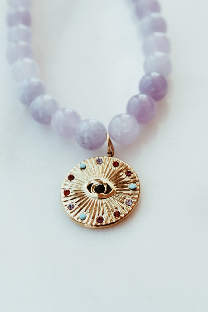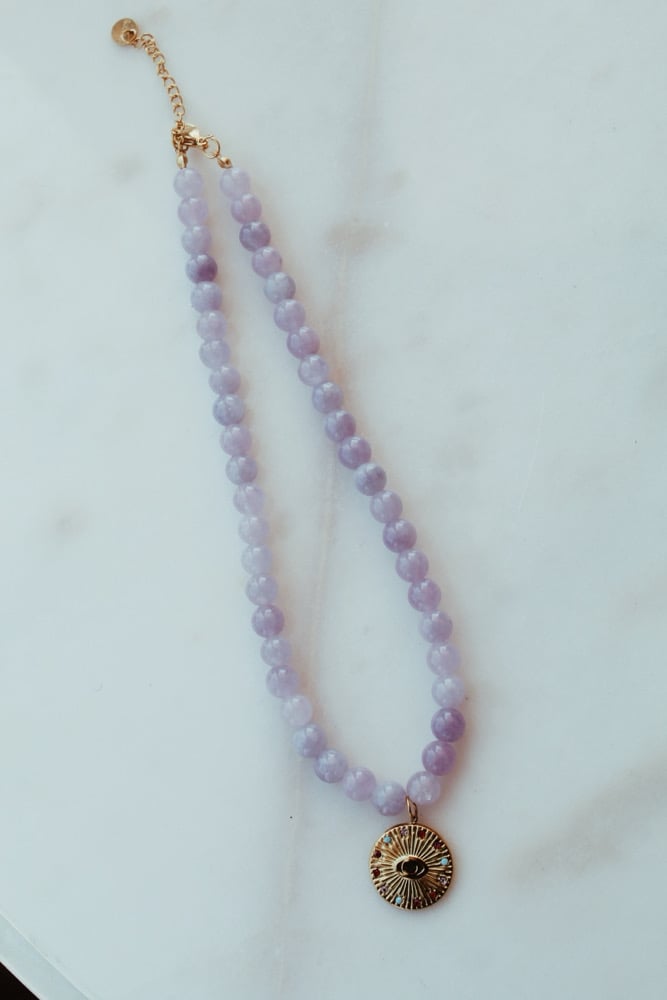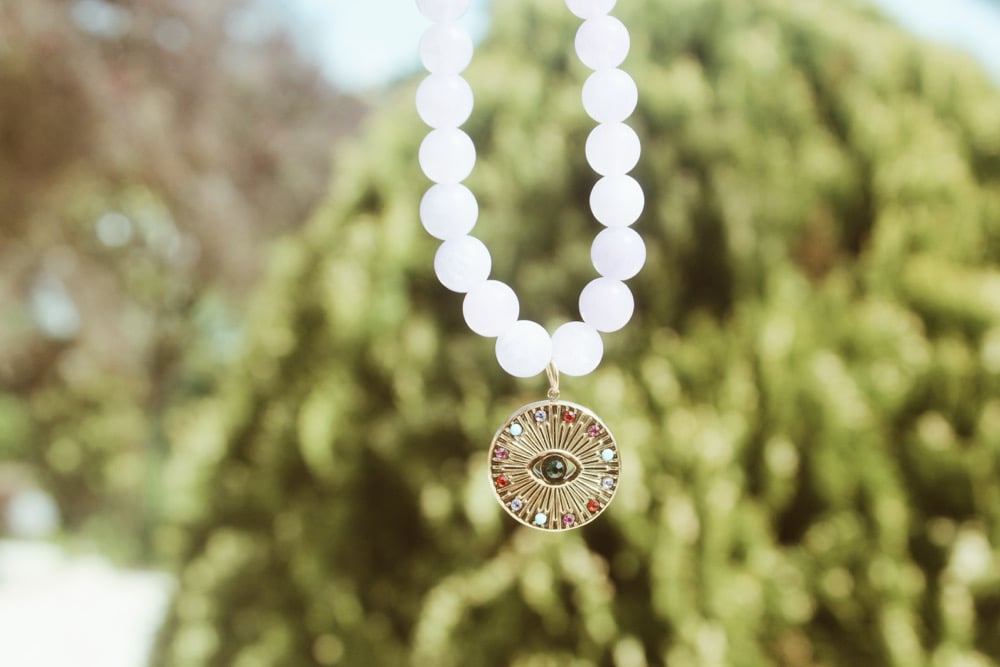 Colar com pedras naturais e pendente em aço inoxidável 🩷