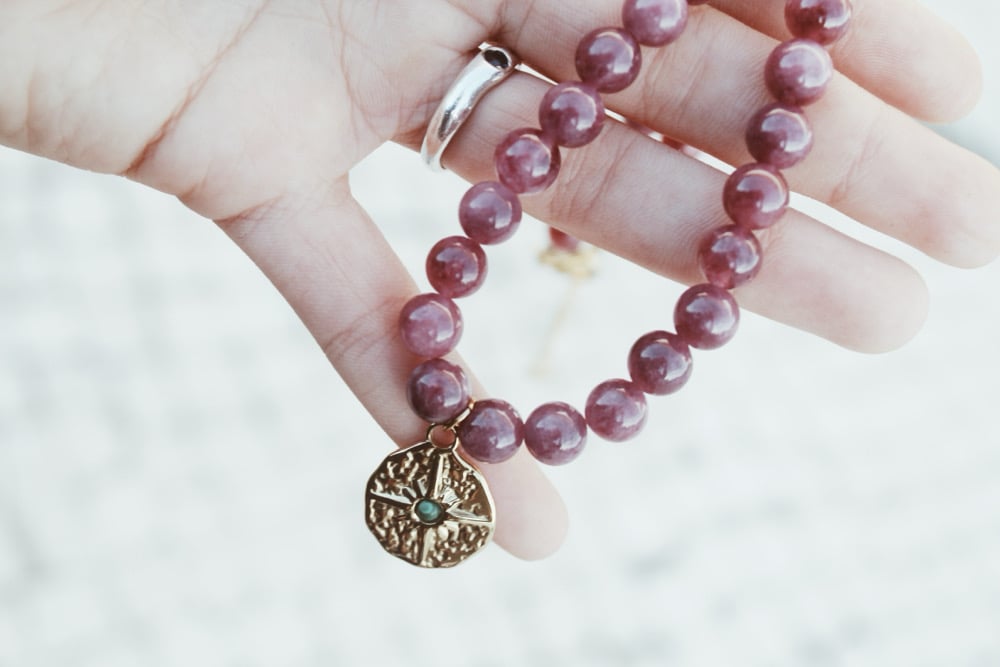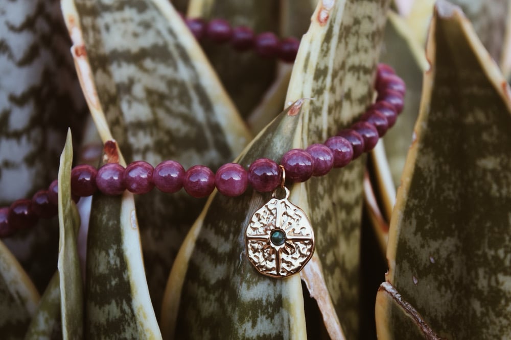 Colar com pedras naturais e pendente em aço inoxidável 🎀