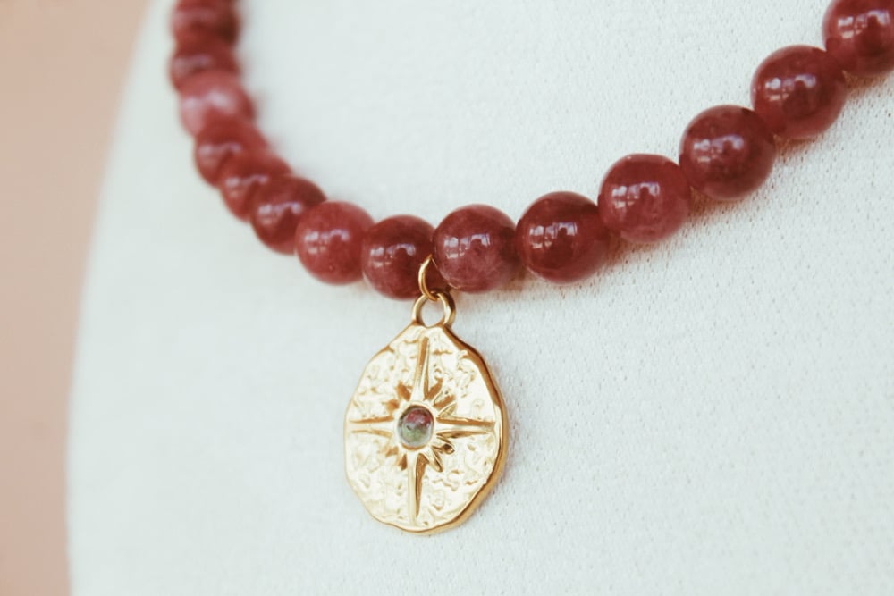Colar com pedras naturais e pendente em aço inoxidável